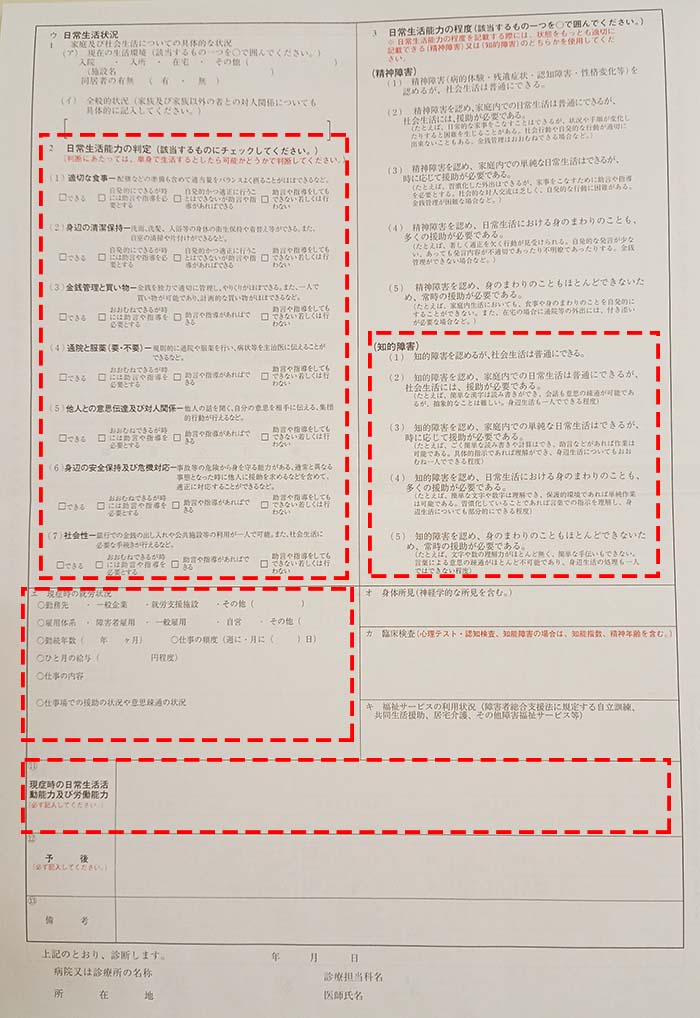いずれにせよ、具体的な情報を診断書にスムーズに盛り込んでいただけるよう、請求者やご家族は、できるだけメモを作成し主治医にお渡しすることをお勧めしています。